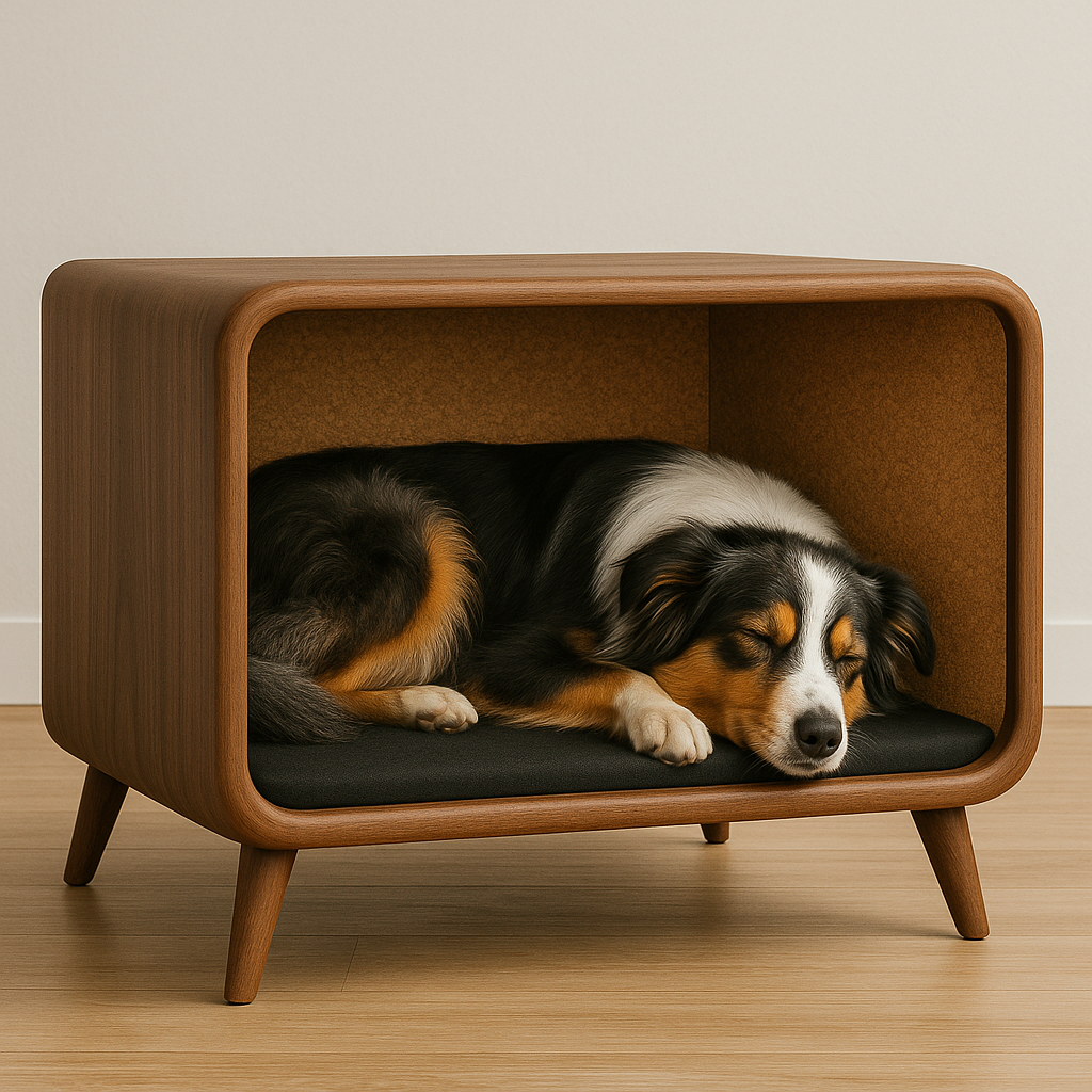 The Large Nura Den creates a quiet, protected space where your medium-large dog will feel safe and sleep with ease. Its cork-lined interior dampens sound, regulates temperature, and naturally resists microbes, while the hardwood exterior and tapered legs bring warm, modern design into your home. After a long day of herding sheep or being your park buddy treat your pup to a comfortable den to rest.